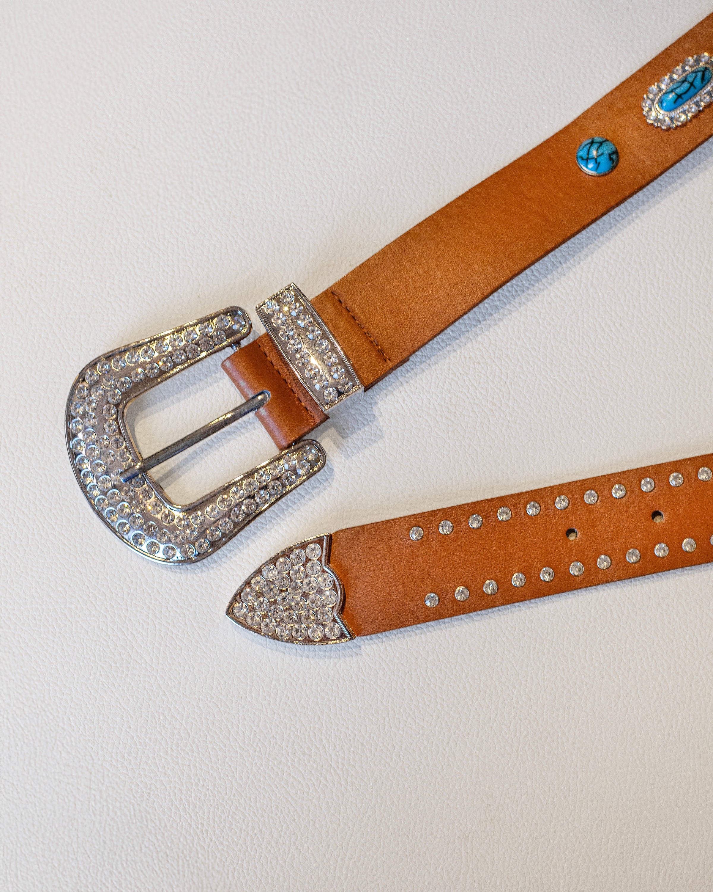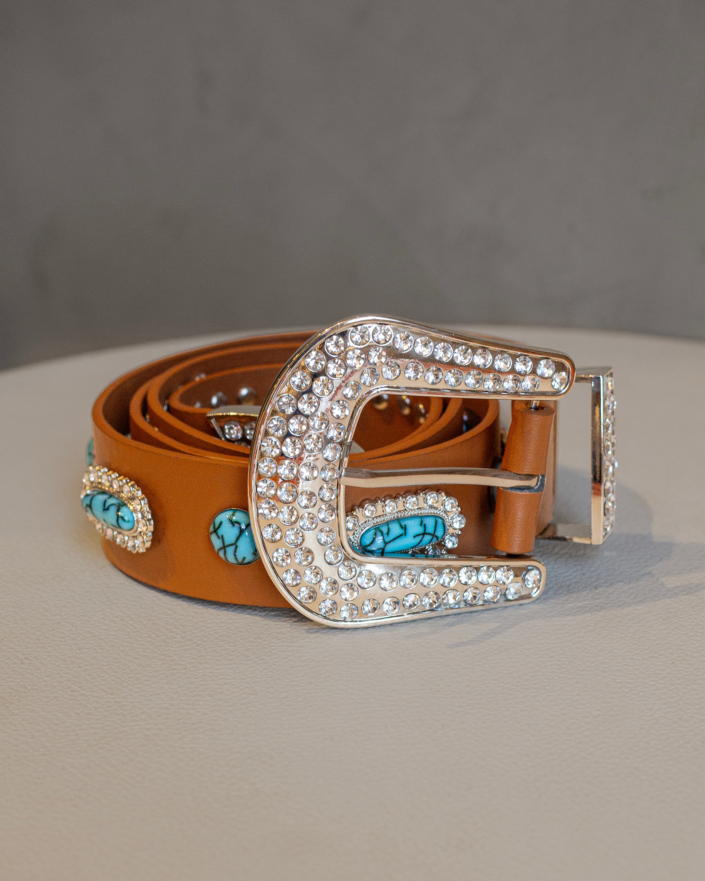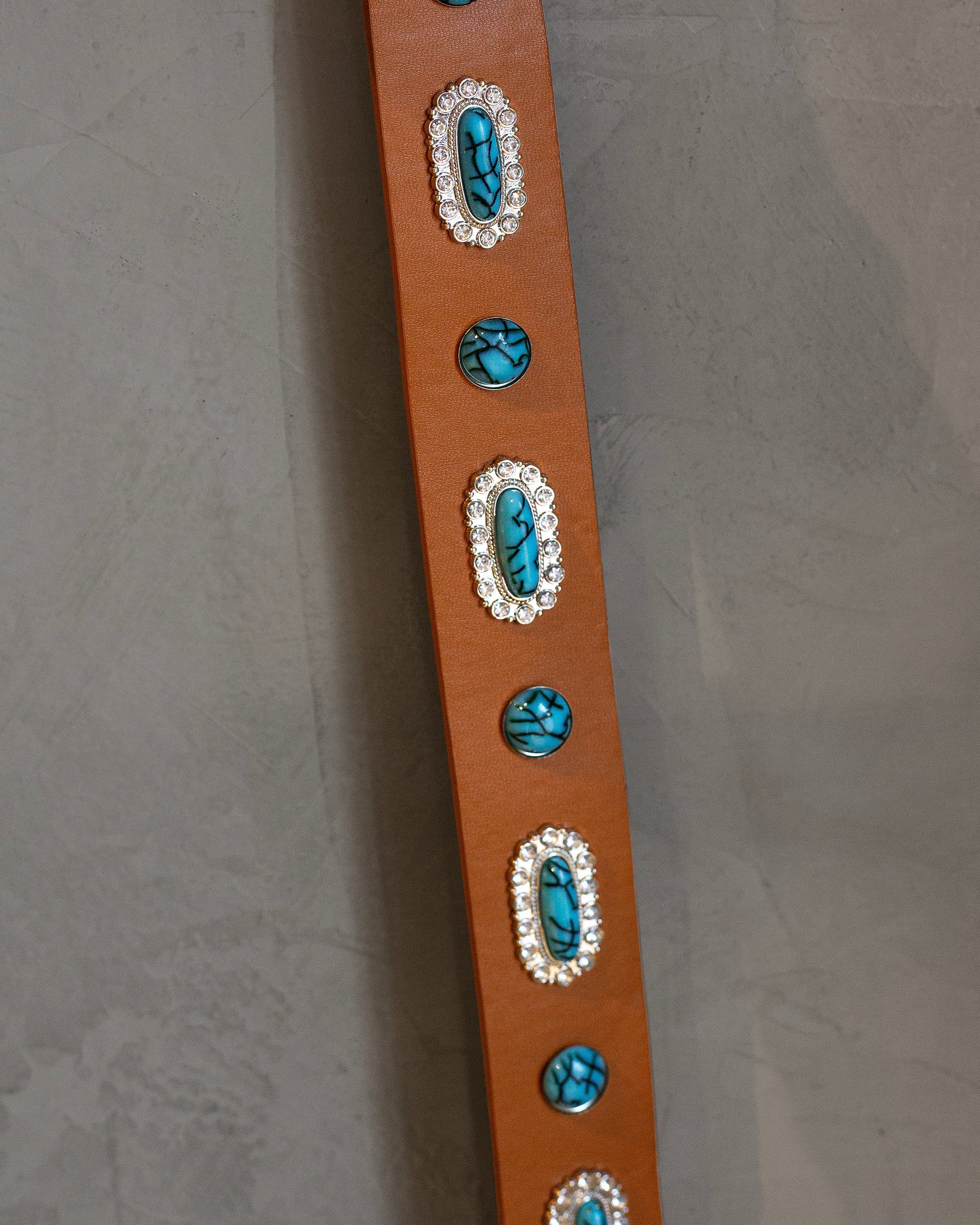 Cinto camel de polipiel con turquesas