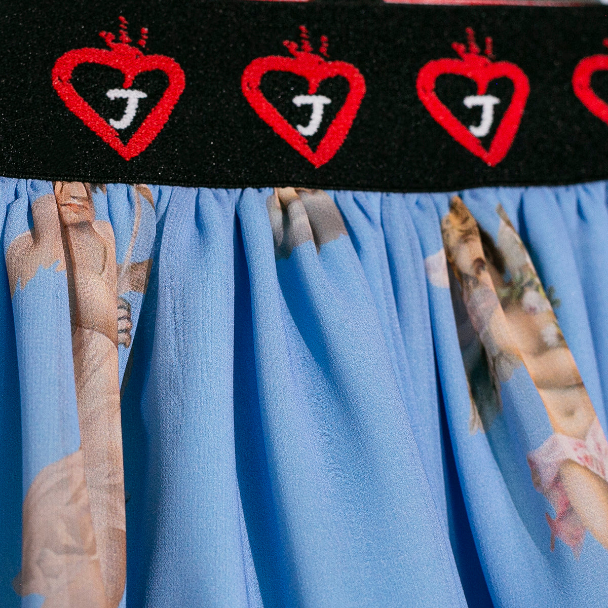 Falda de chiffon con estampado de cupidos y elástico en la cintura