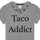 Blusa de algodón con cuello redondo en color gris con la frase Taco Addict con el cuello bordado